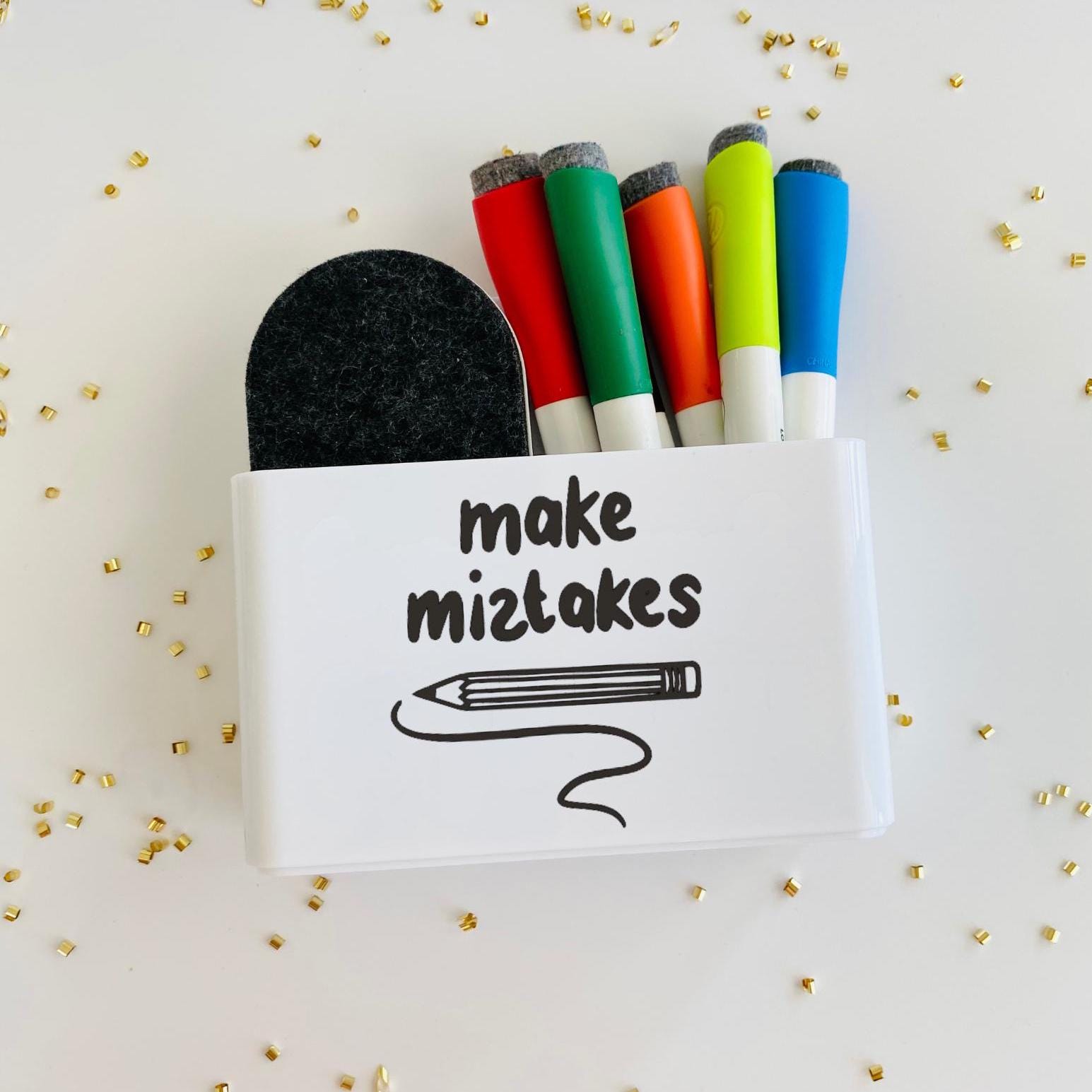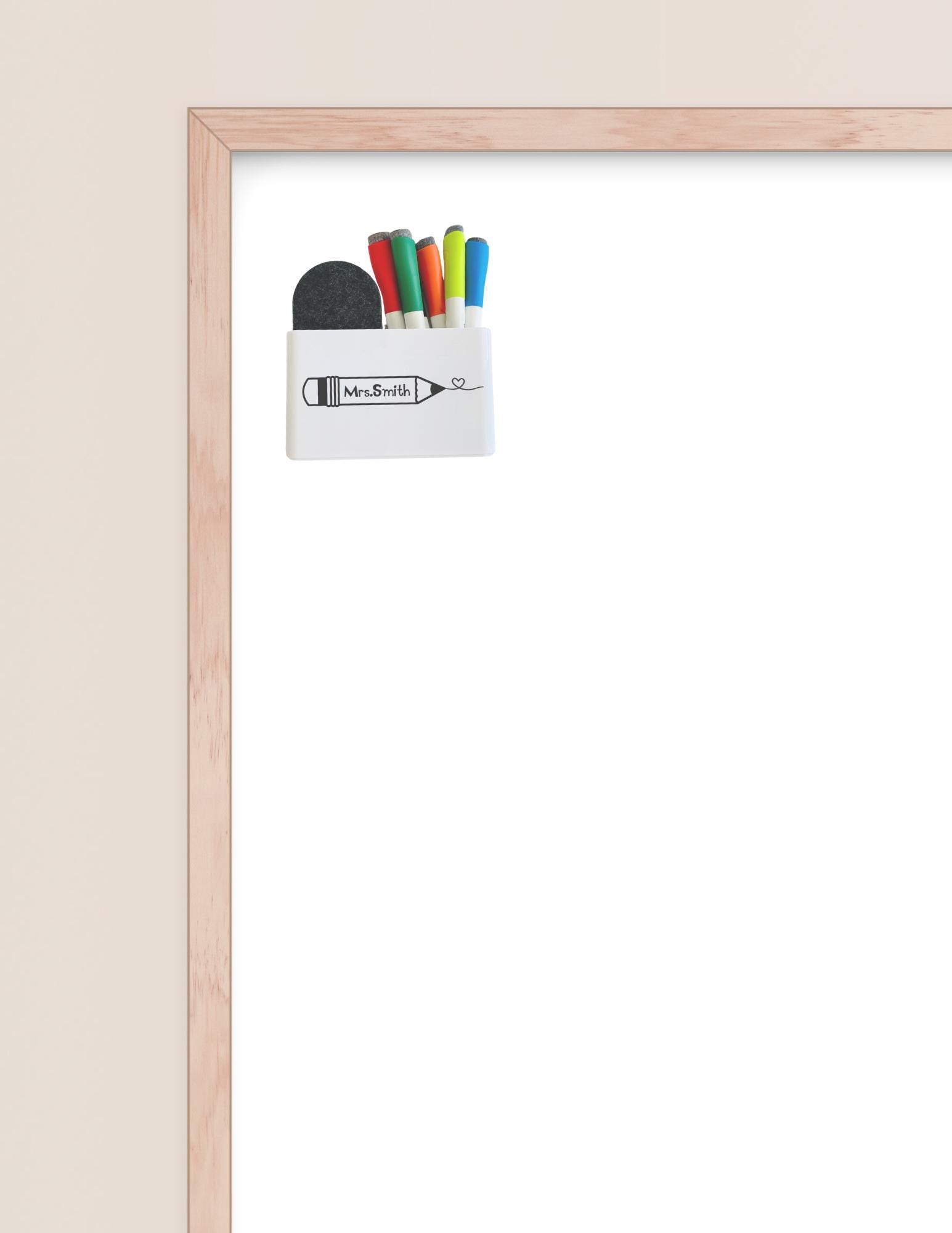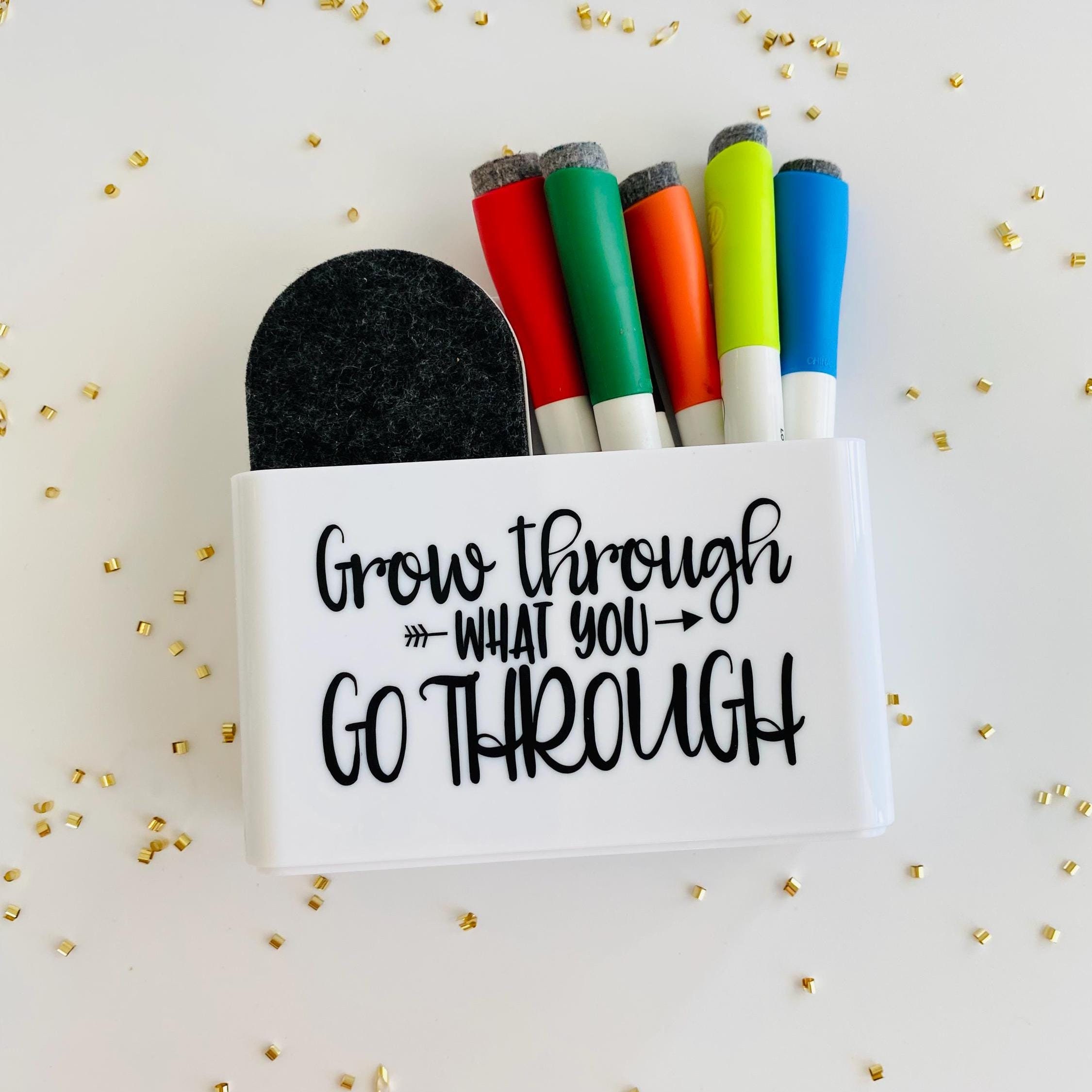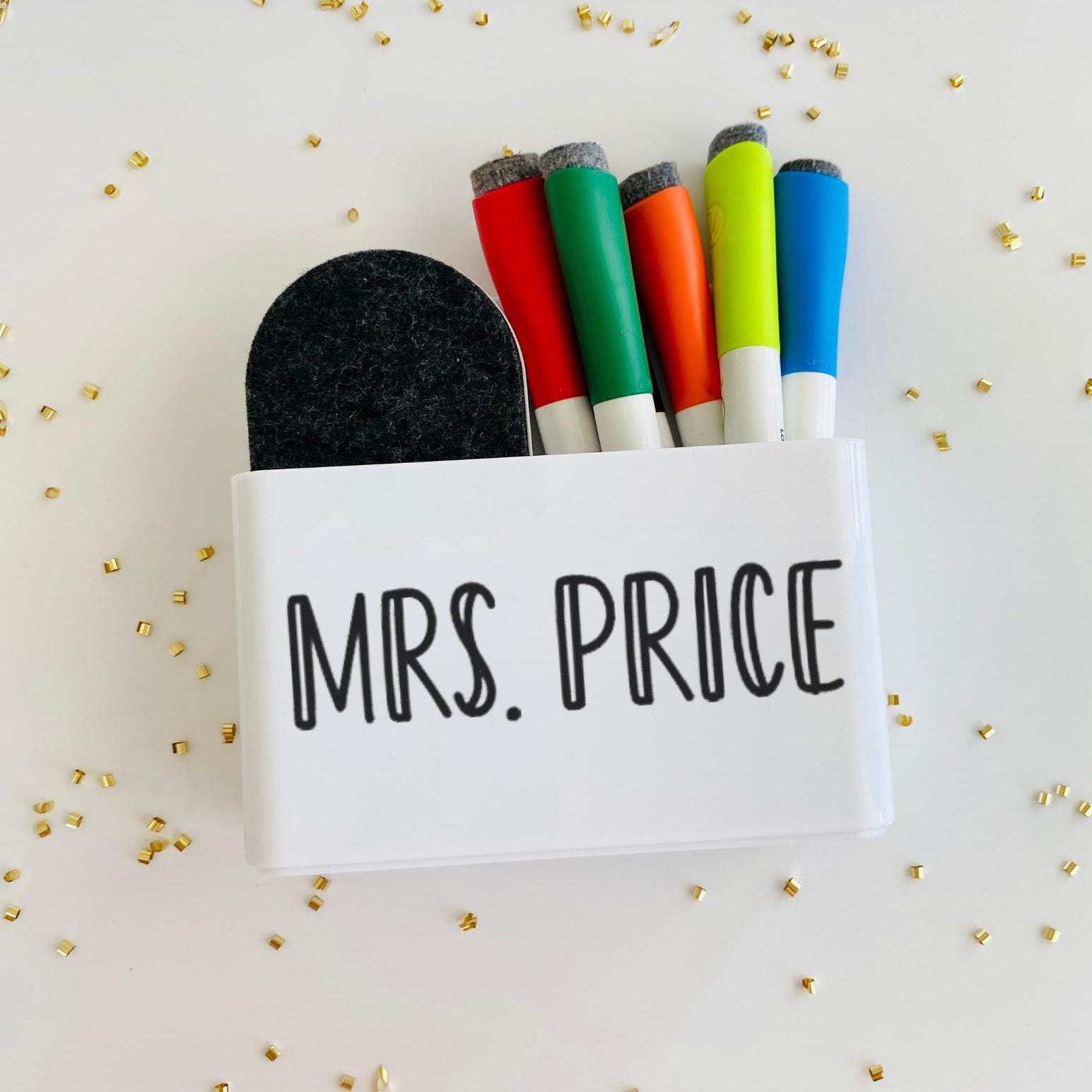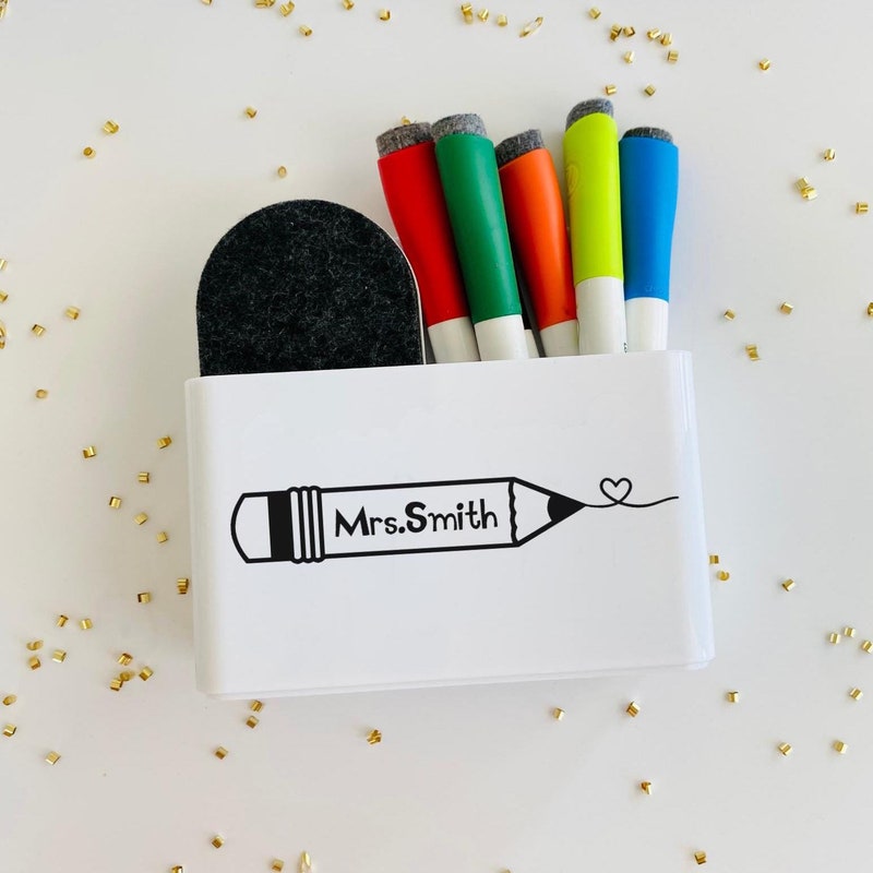 This Personalized Magnetic WhiteBoard (Dry Erase Board) Holder for Markers & Eraser is the perfect way to start the year off sweet. The entire back side of the holder is a magnet for strong hold on any magnetized WhiteBoard. Keep all dry erase pens and eraser attached to the board for easy access and organization. (Pens & Eraser not included in this listing, holder only)