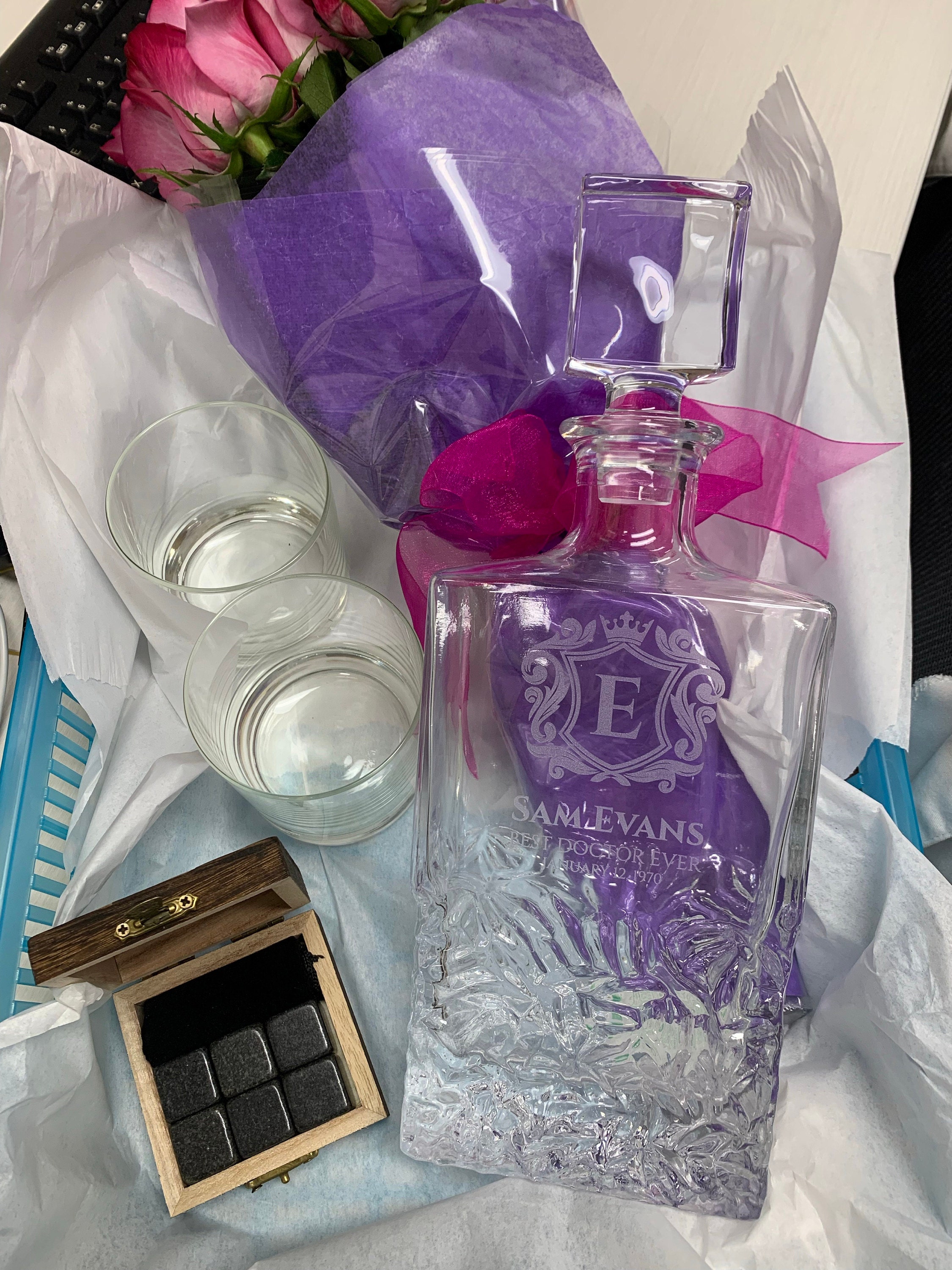 Etched Whiskey Decanter, Personalized Decanter Set, Anniversary Gift