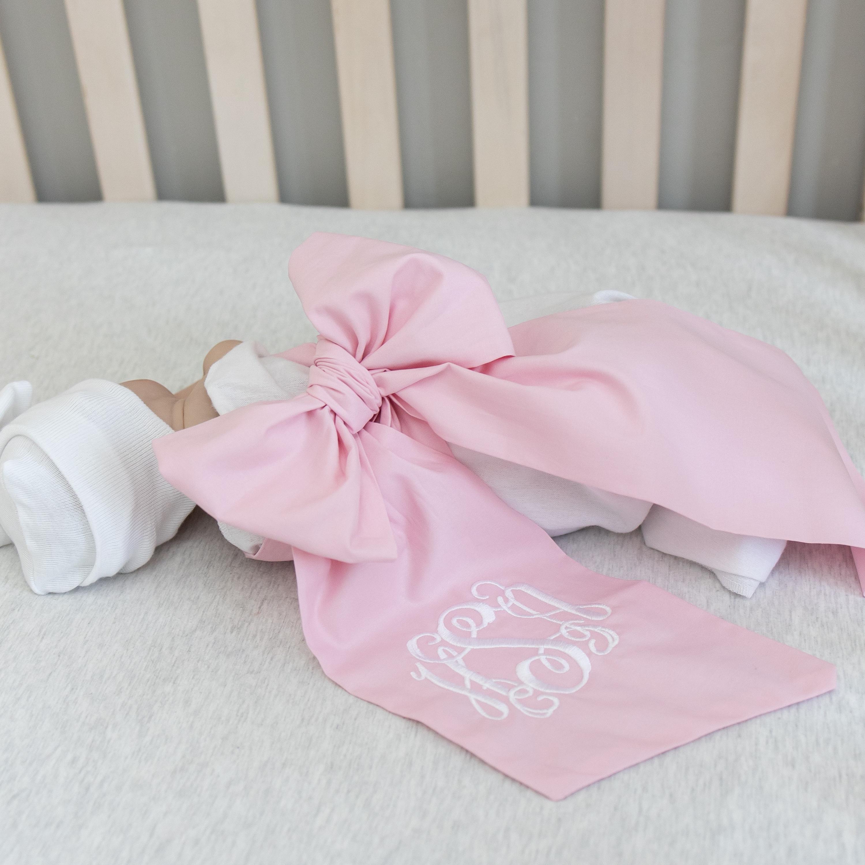 >Please note that the pink on this swaddle blanket is a darker pink than the sash only and not a light baby pink.