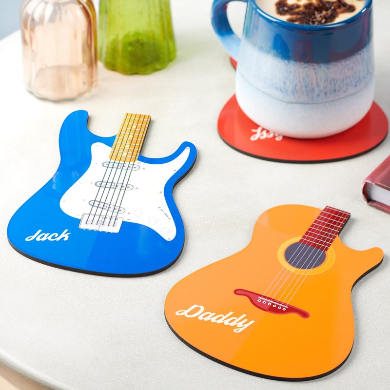 Whether you're a seasoned musician or a music enthusiast, this coaster is a must-have accessory for your home or studio. It's also a thoughtful and unique gift for the rockstar in your life. Make every sip a musical experience with the Personalised Wooden Guitar Coaster.