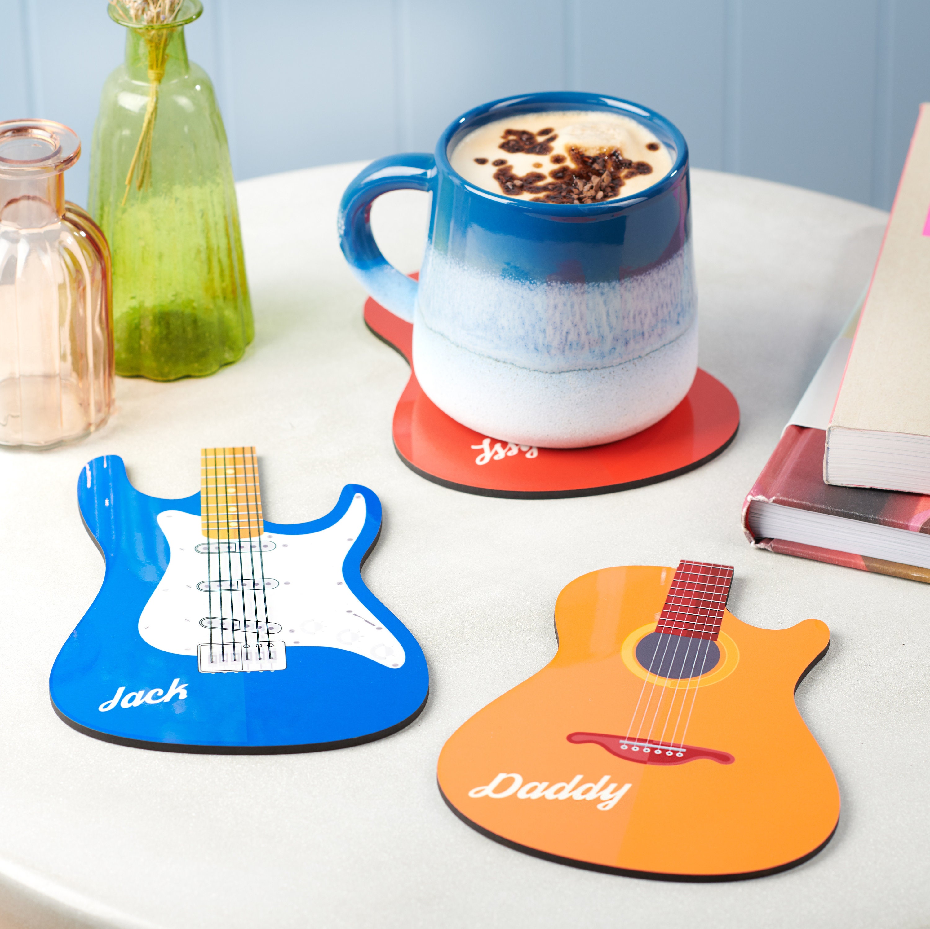 Crafted from high-quality wood, this coaster protects your surfaces and adds a touch of musical flair to your space. Personalize it with your chosen guitar design and color to create a custom coaster that reflects your passion for music.