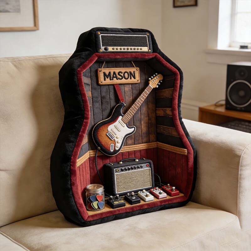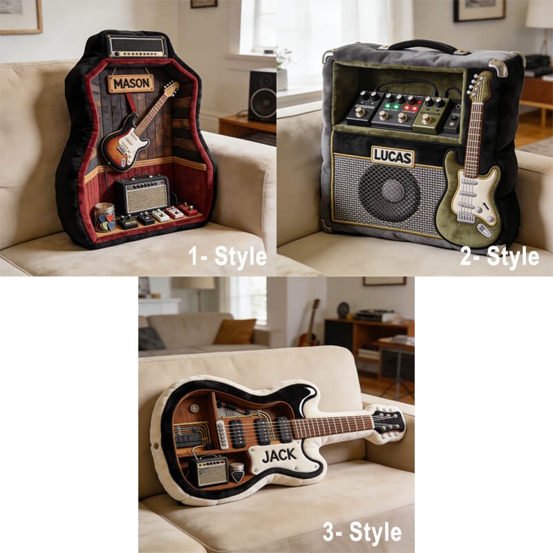This guitar-themed throw pillow is a gentle vessel for the soul of music, bringing both visual and emotional enjoyment to every melody lover. It supports personalized text customization; you can have your stage name, favorite chord progressions, classic lyrics, or musical motto printed on it, making the pillow a witness to your musical journey. Whether in a recording studio's corner or a home music room, this pillow creates a strong artistic atmosphere. As a gift for guitarists, singers, or music producers, this customized item is both practical and full of sentimental value. The design features a classic guitar shape, combined with vintage or modern visual styles, showcasing the diverse charm of music culture. The customization area can be flexibly arranged according to your needs, ensuring that every word is perfectly integrated into the design, becoming your unique musical totem.