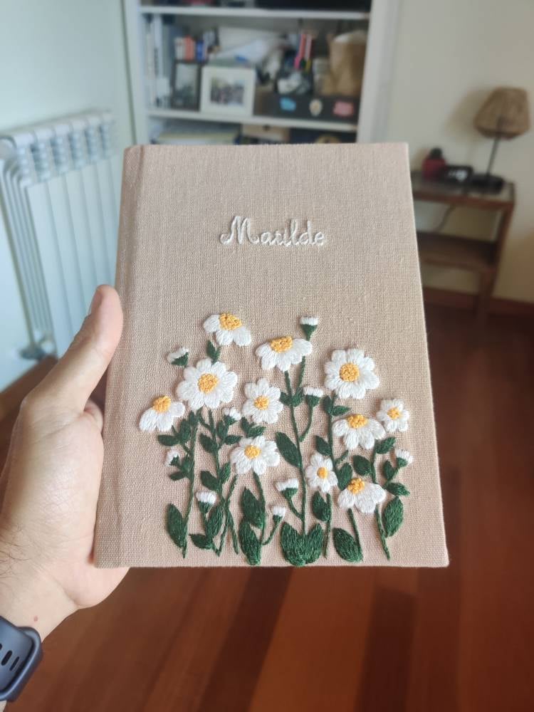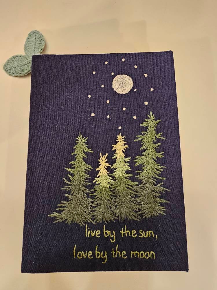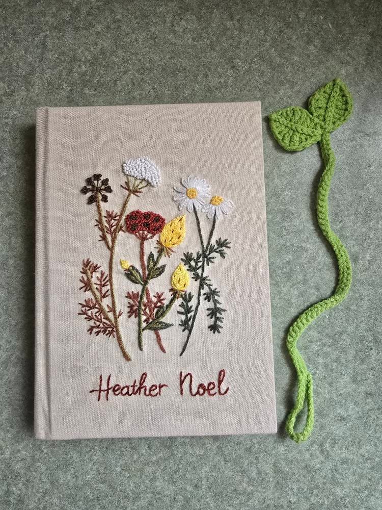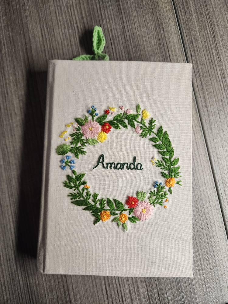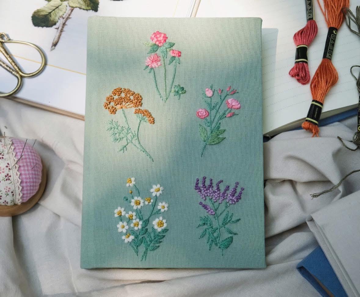 The notebook is carefully cared for by us from the outside to the inside. The outside is cardboard wrapped in fabric and is embroidered flower patterns by hand, inside is high quality brown kraft paper or cream white paper.