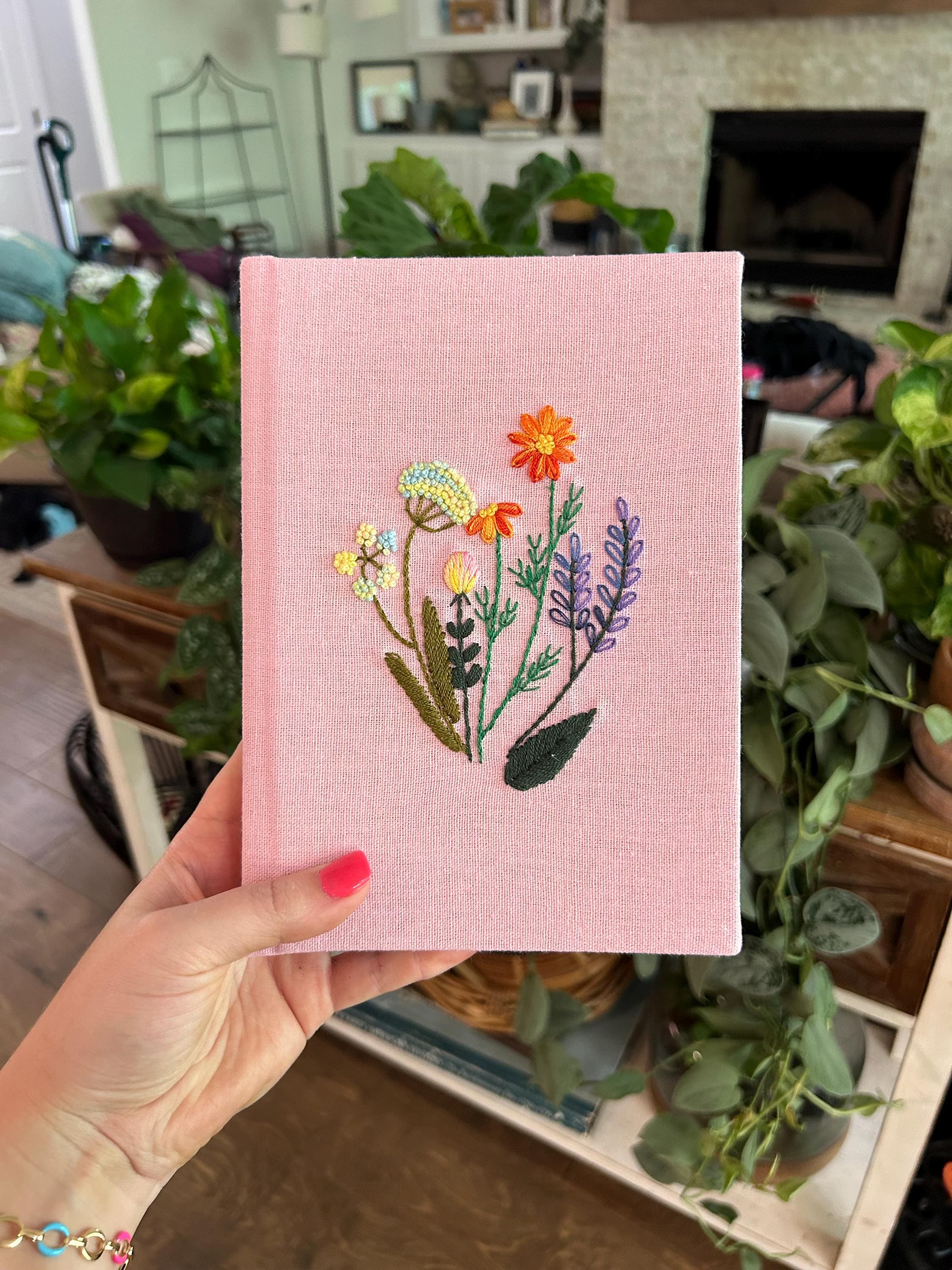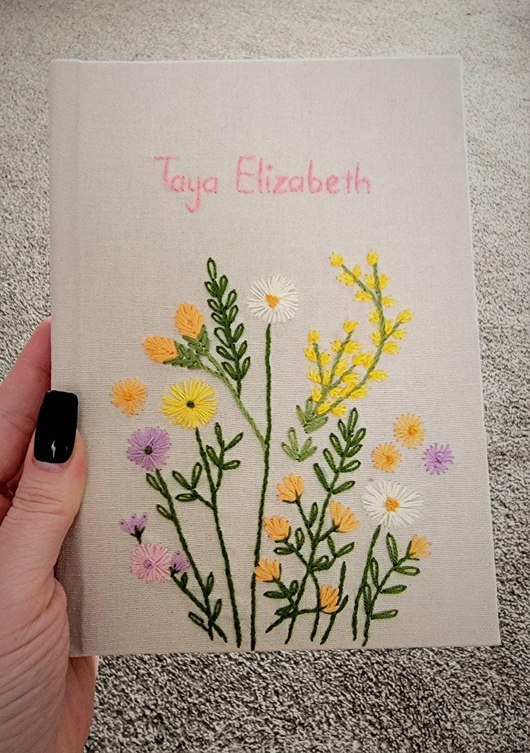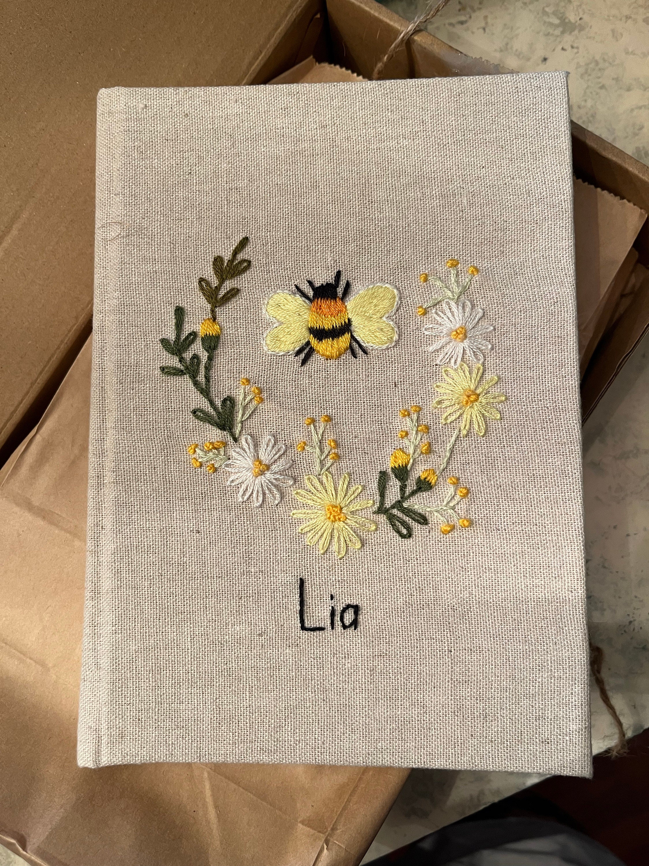The notebook is carefully cared for by us from the outside to the inside. The outside is cardboard wrapped in fabric and is embroidered flower patterns by hand, inside is high quality brown kraft paper or cream white paper.