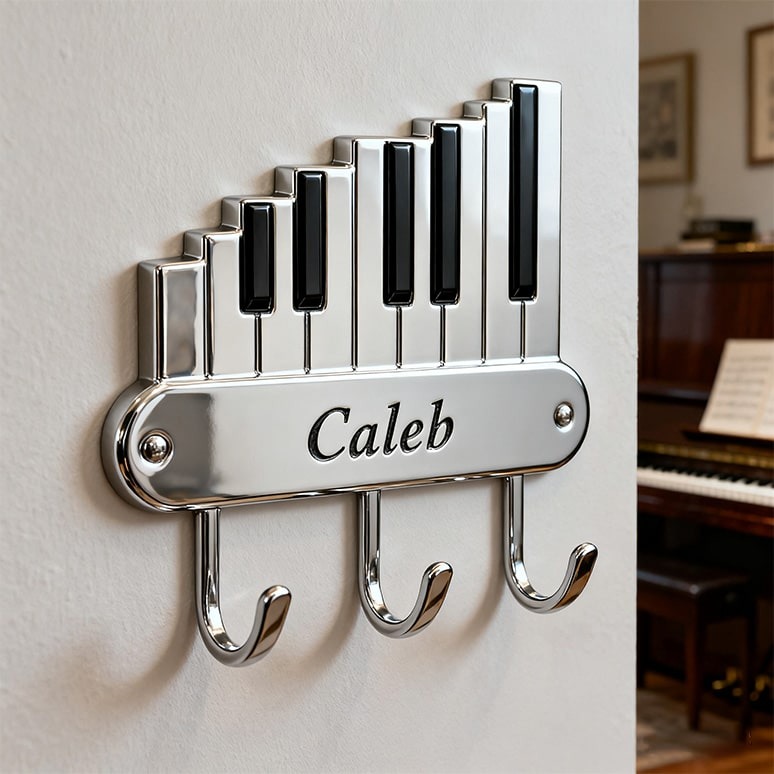 The bottom supports personalized engraving, allowing you to add your name, date, or message, making it a one-of-a-kind design. Whether it's an everyday item for music lovers or a special gift for friends, students, or family, this piano keyboard-themed metal hook will bring a touch of rhythm and art to your life.