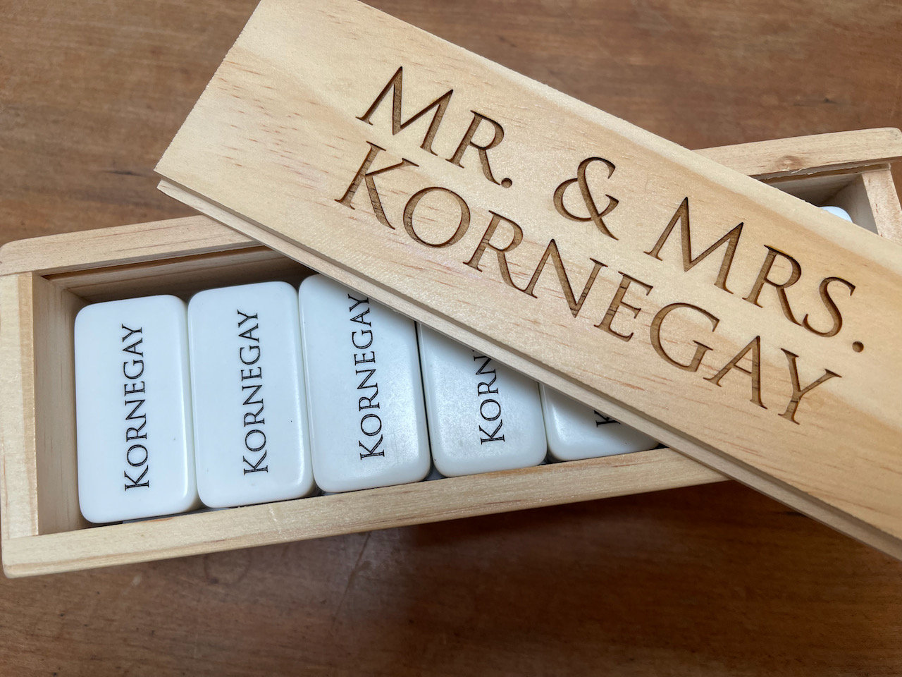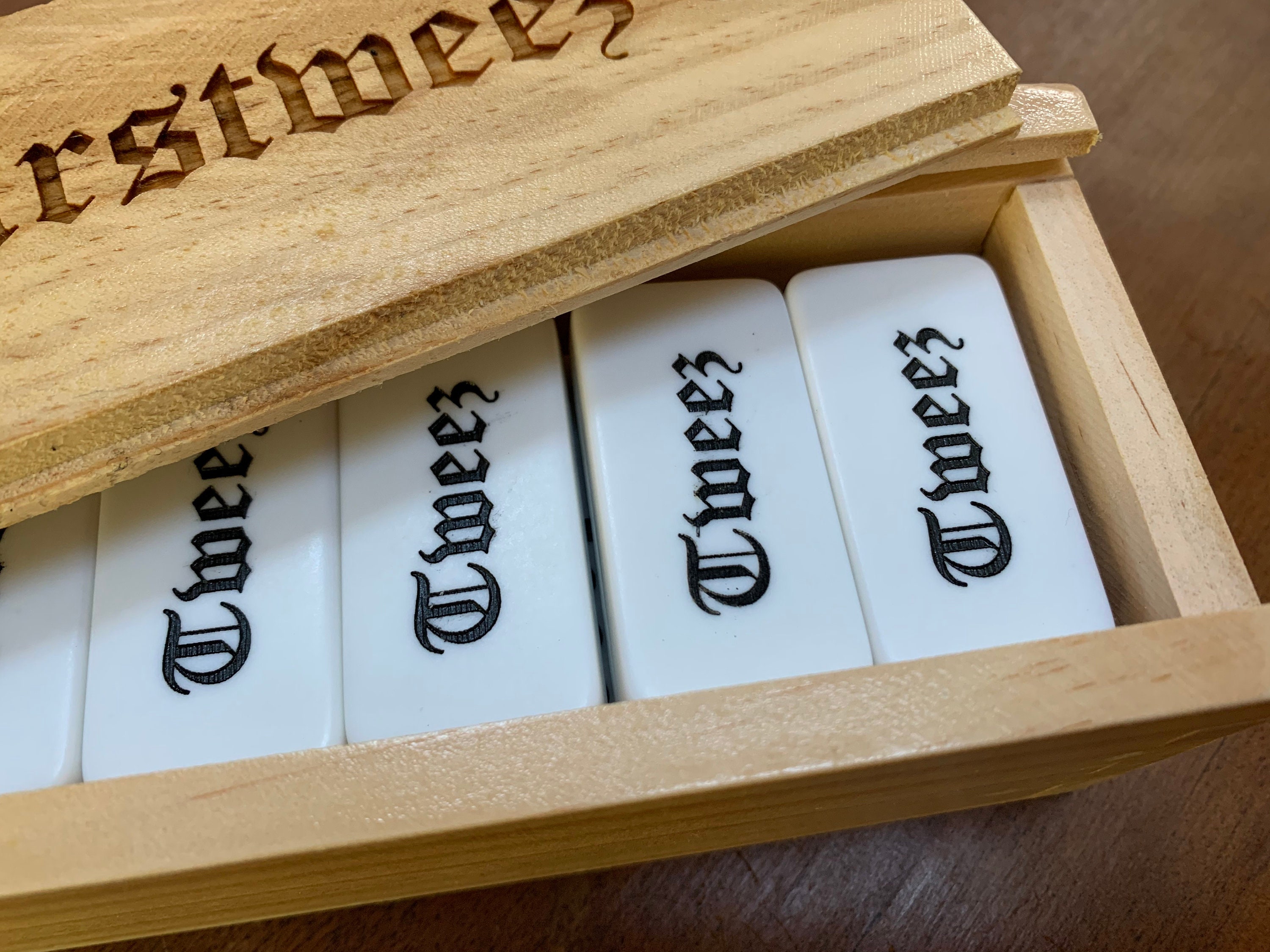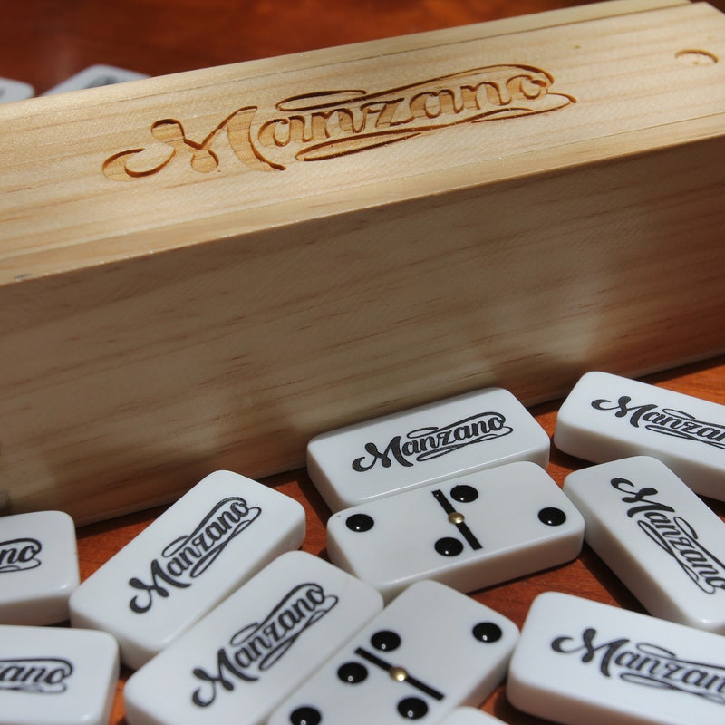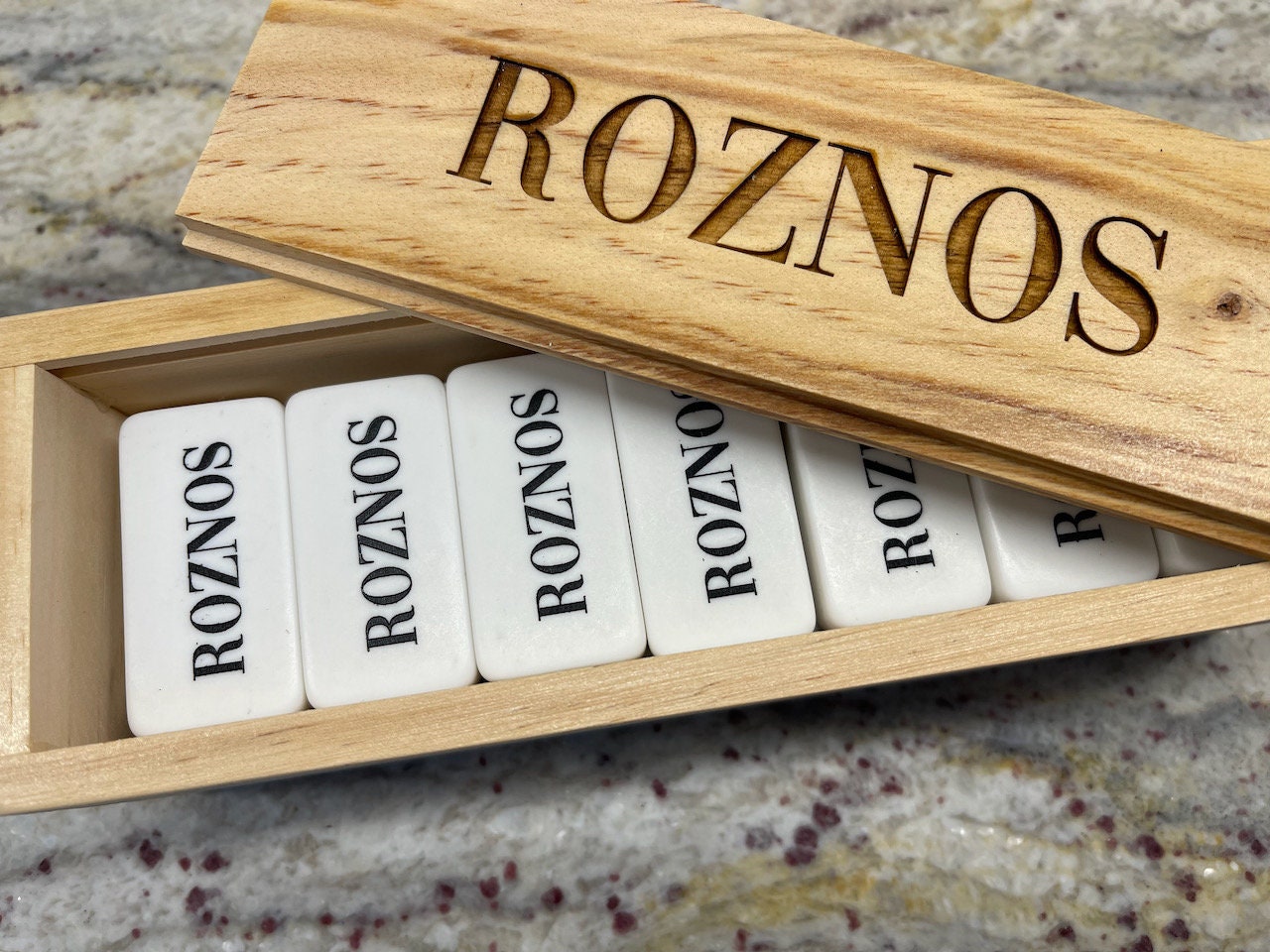 Spice up your game night with our personalised printed and engraved set of 28 white double six dominoes! This unique gift is perfect for friends and family and can be customised with a logo or logo. Each set includes brightly coloured printed ink filled dominoes to ensure long lasting fun. Perfect for a housewarming party, birthday or special occasion, this domino set adds a personal touch to each game. Bring friends and family together with this thoughtful gift and create lasting memories!