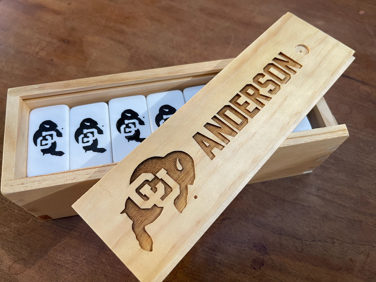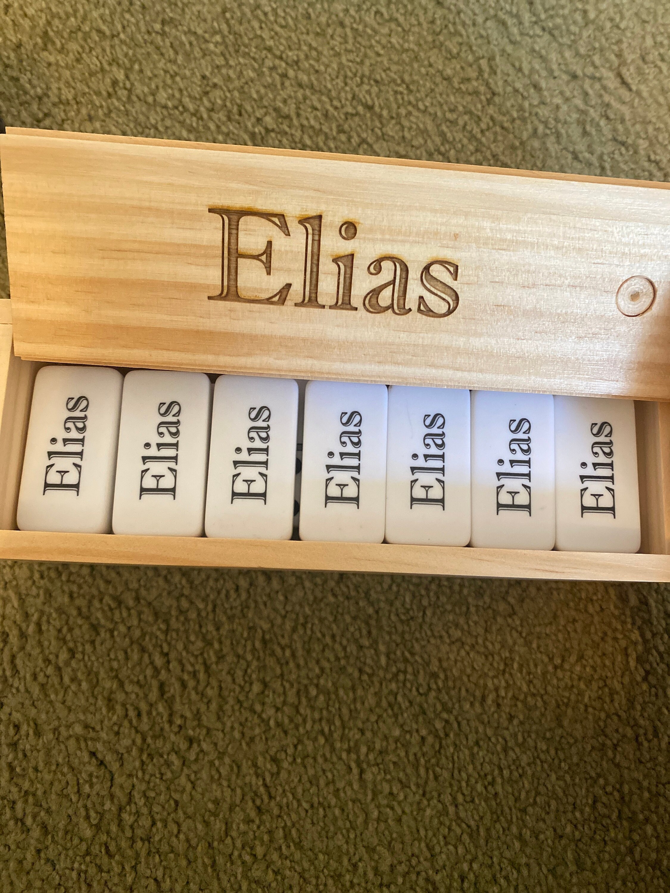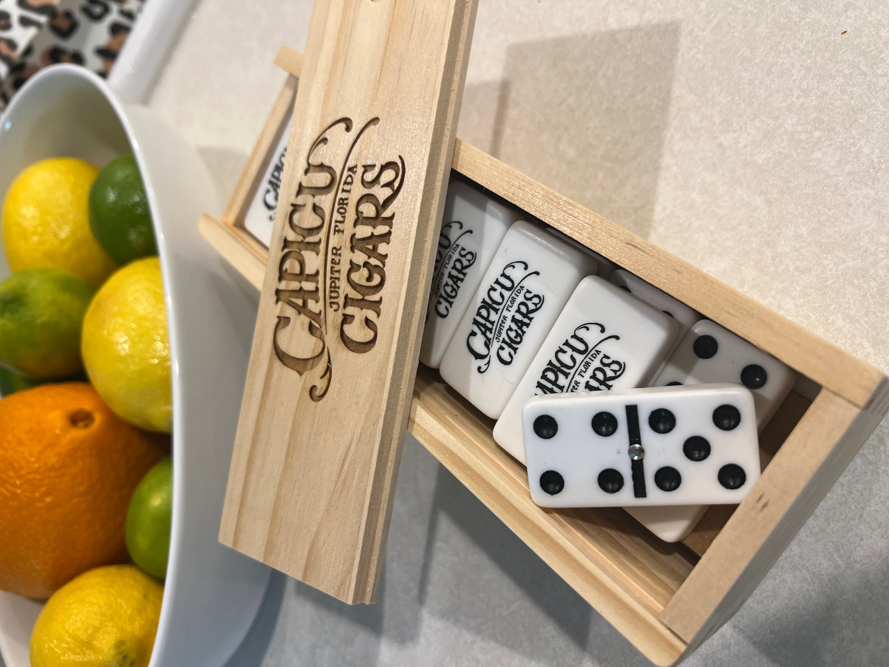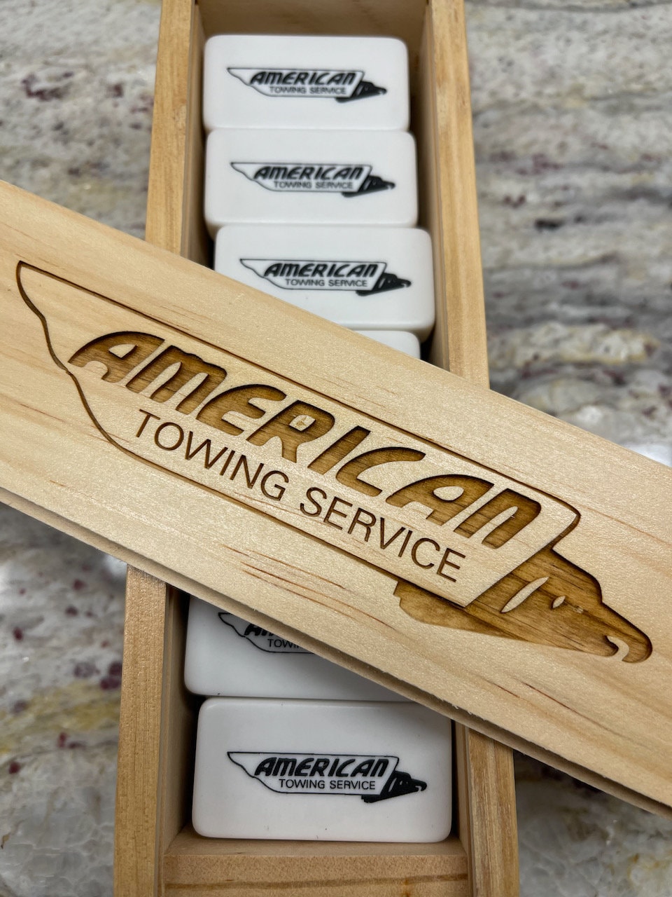 Spice up your game night with our personalised printed and engraved set of 28 white double six dominoes! This unique gift is perfect for friends and family and can be customised with a logo or logo. Each set includes brightly coloured printed ink filled dominoes to ensure long lasting fun. Perfect for a housewarming party, birthday or special occasion, this domino set adds a personal touch to each game. Bring friends and family together with this thoughtful gift and create lasting memories!