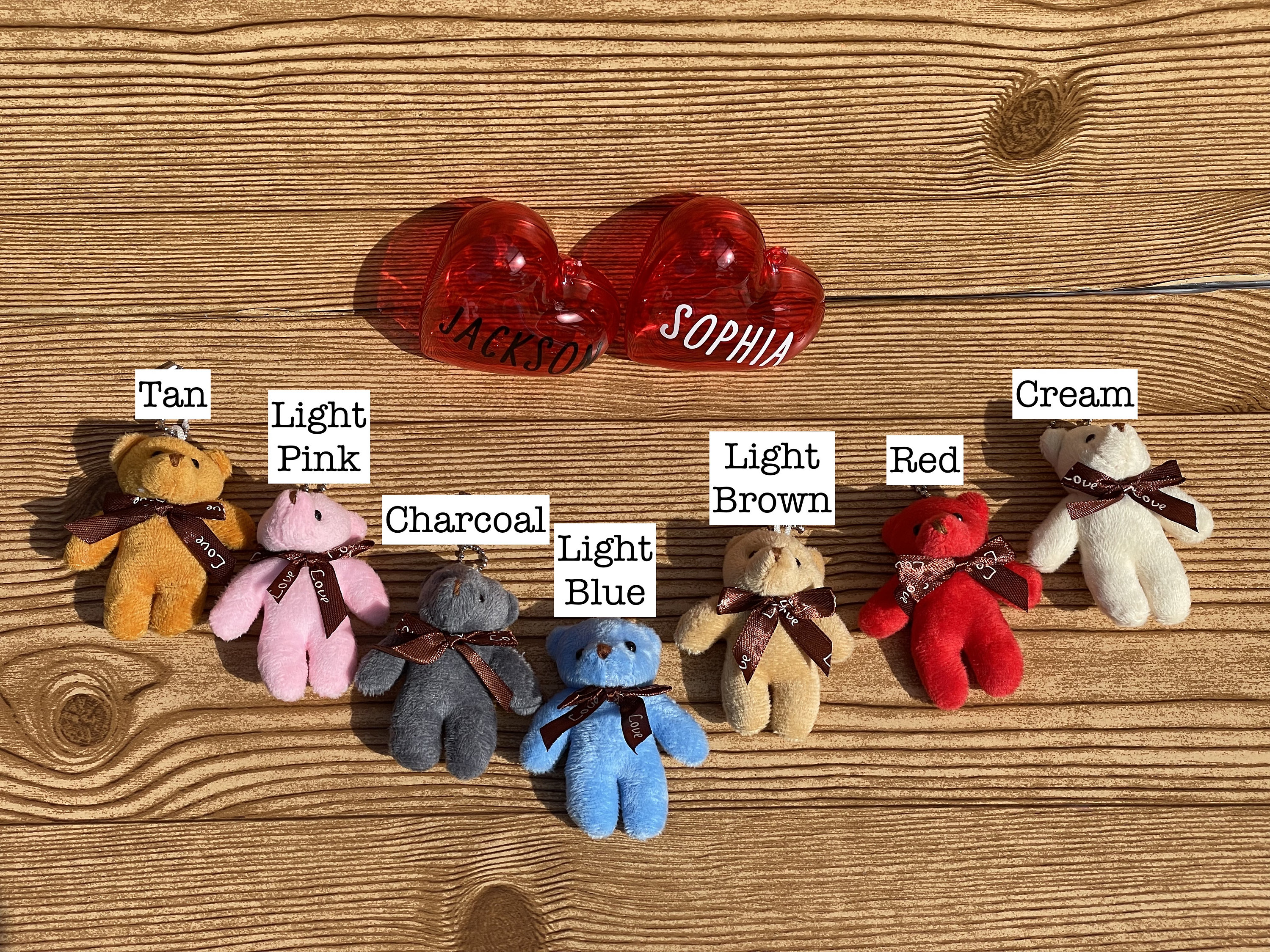These cute little Teddy Bears are available in Tan, Cream, Light Brown, Charcoal, Light Pink, Red and Light Blue.