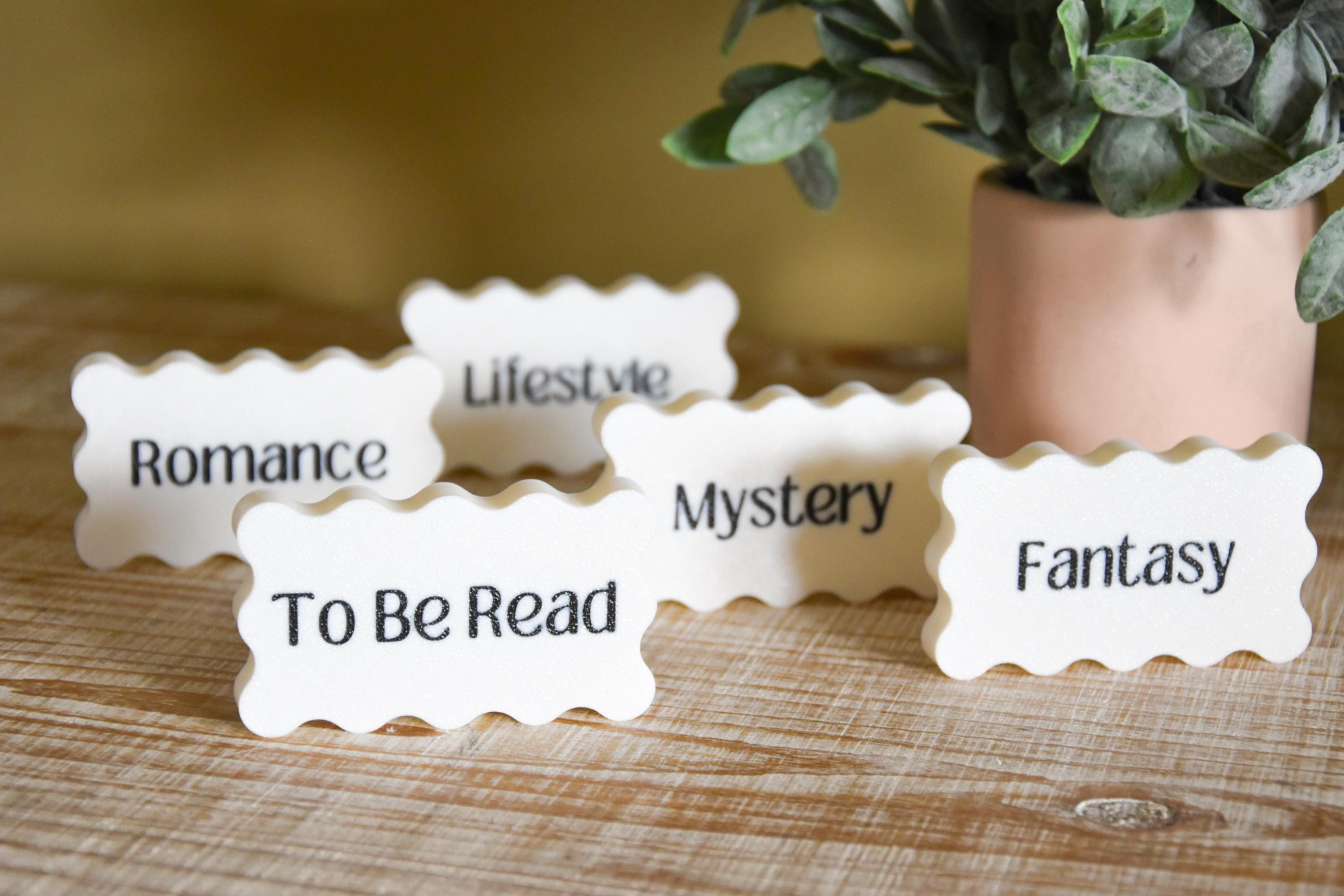 Enhance your home library with these stylish wavy bookshelf labels, designed to bring both elegance and organization to your book collection. Featuring a wavy-edge, these labels add a soft, decorative touch while keeping your shelves neatly categorized.