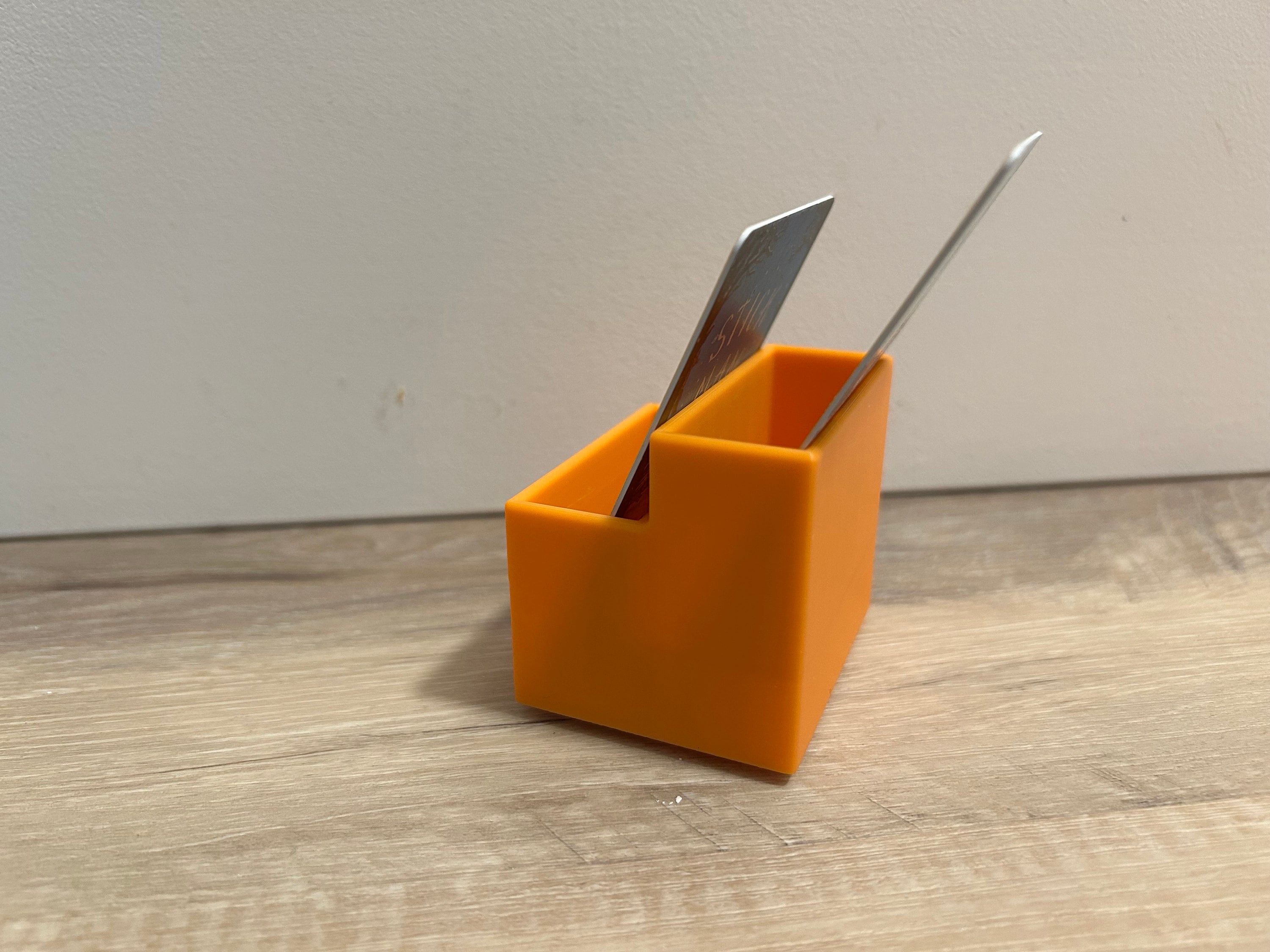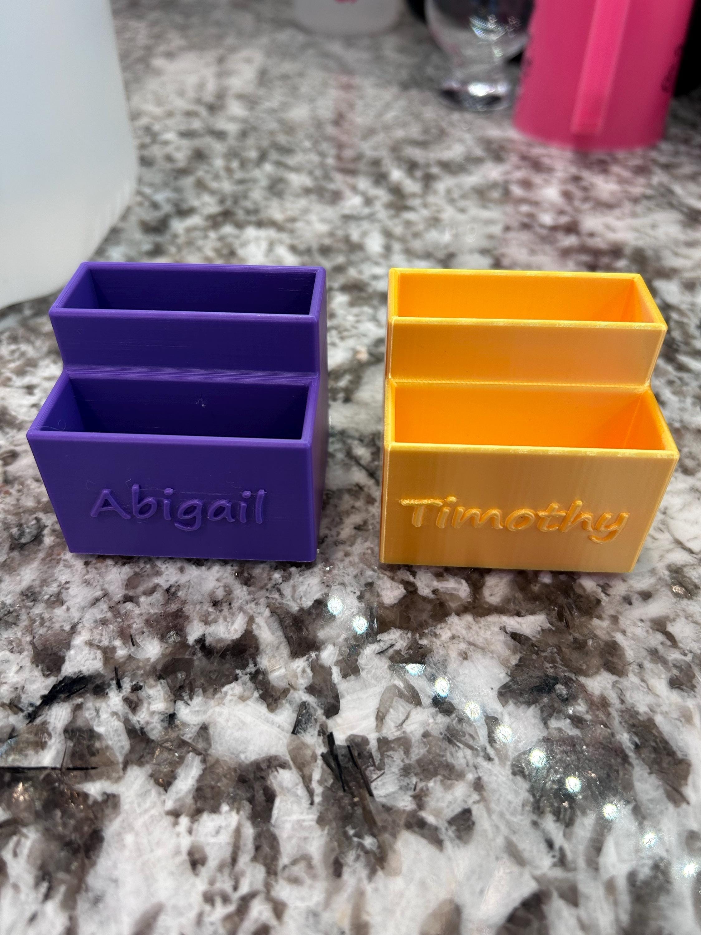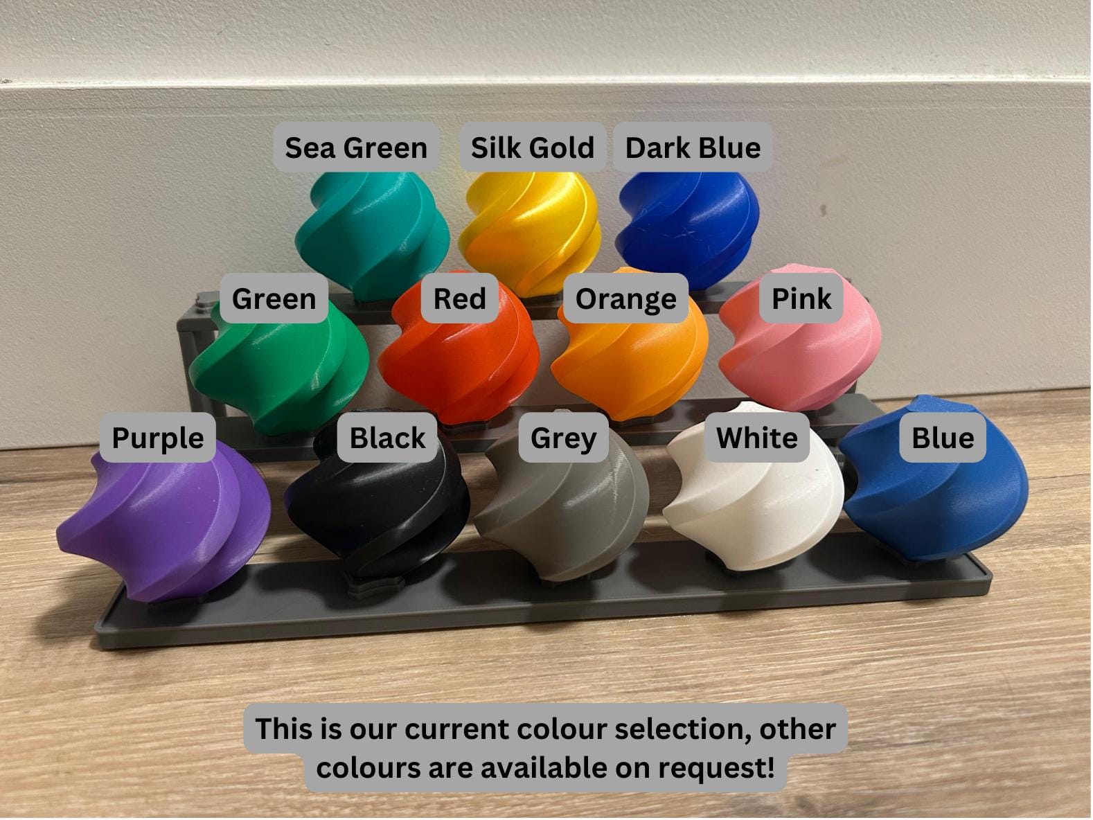These are printed to order out of PLA plastic, which is easy to clean and maintain. There’s non slip feet on the base to keep the holder from sliding around when being used.